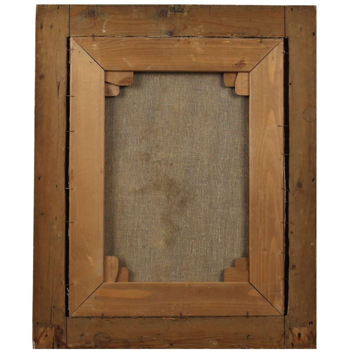 € 2.500Dipinto ad olio su tela in cornice in legno dorato a canna spaccata (lievi rinforzi). Non firmato. Un'opera analoga è esposta presso la Galleria d'Arte Moderna "Empedocle Restivo" di Palermo . Cm 55x42