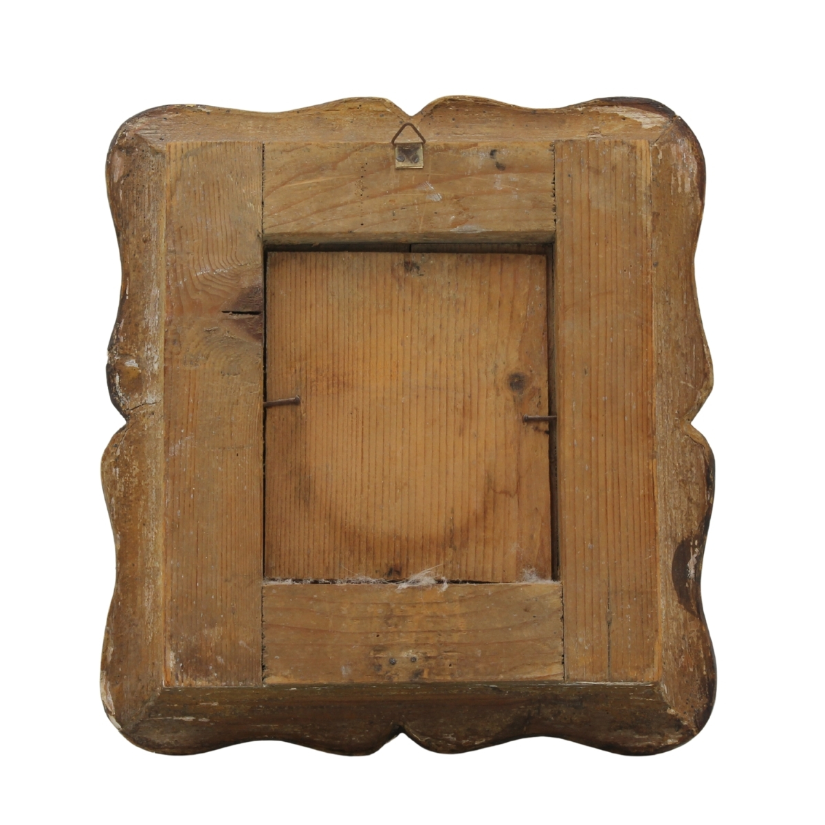 € 150Piccolo dipinto ovale ad olio su rame inserito in cornice in legno inciso e dorato a vassoio. Cm 9x7,5