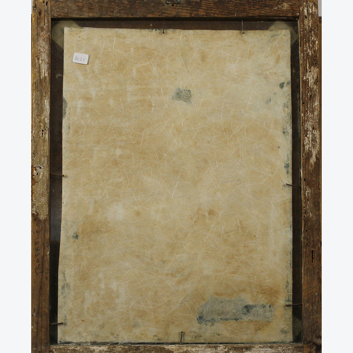 € 500Dipinto ad olio su carta in cornice in legno inciso e dorato. Cm 44x32