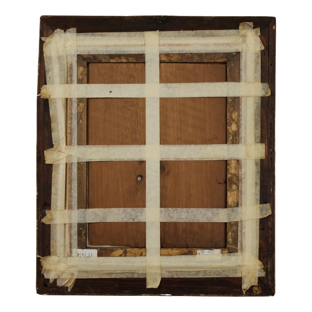 € 500Dipinto ad olio su vetro in cornice in legno dorato. Cm 24x18