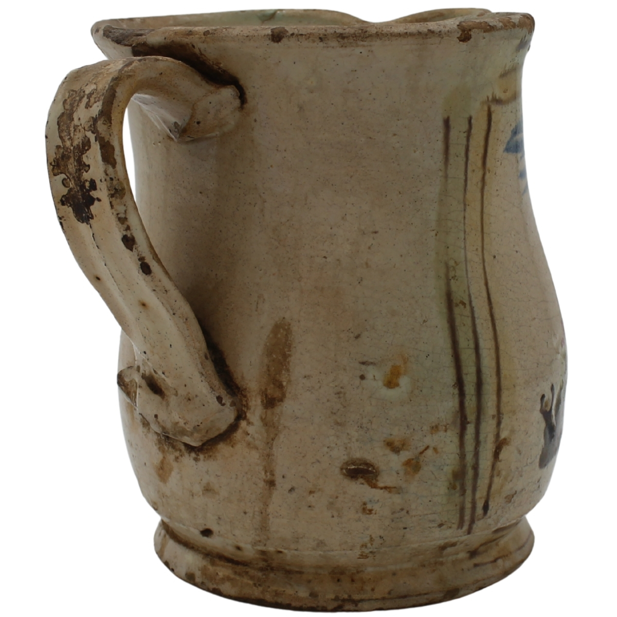 € 300Antica maiolica decorata sul fronte a motivi ornamentali policromi su fondo crema. Caltagirone. Secolo XIX. Cm h 22