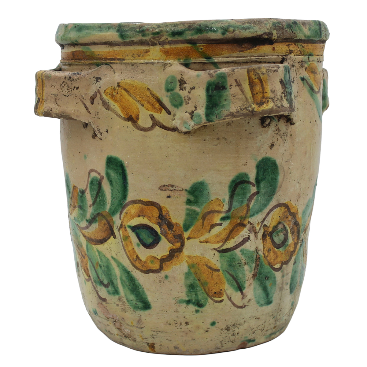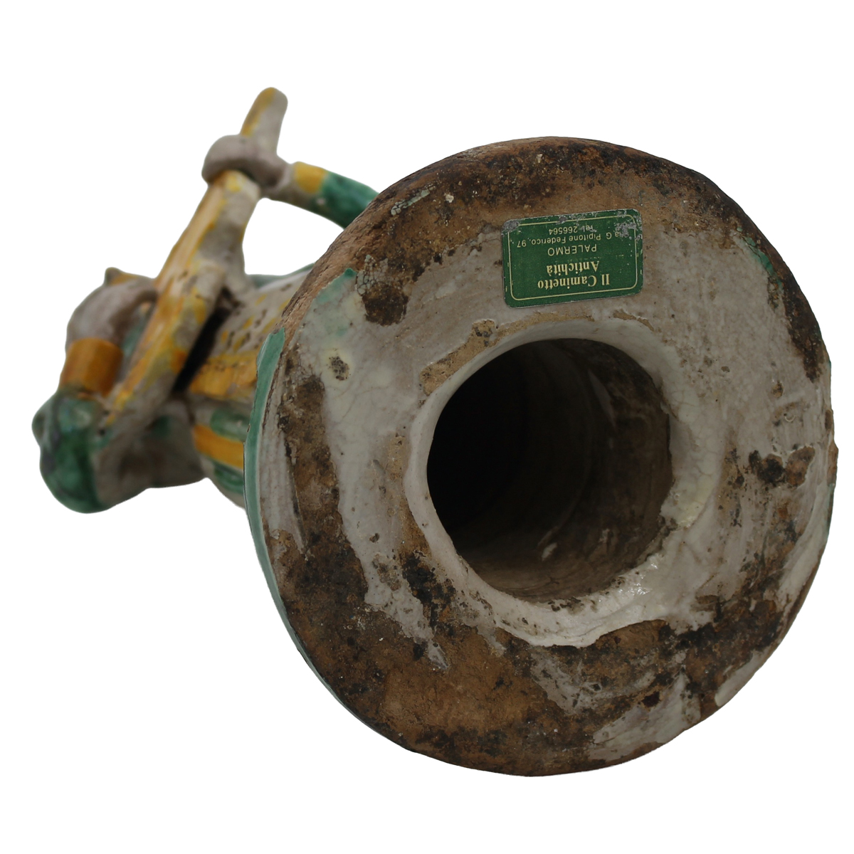 € 550Antica maiolica con decoro a motivi ornamentali policromi su fondo crema (restauri sul collo). Caltagirone. Inizi del secolo XIX. Cm h 33
