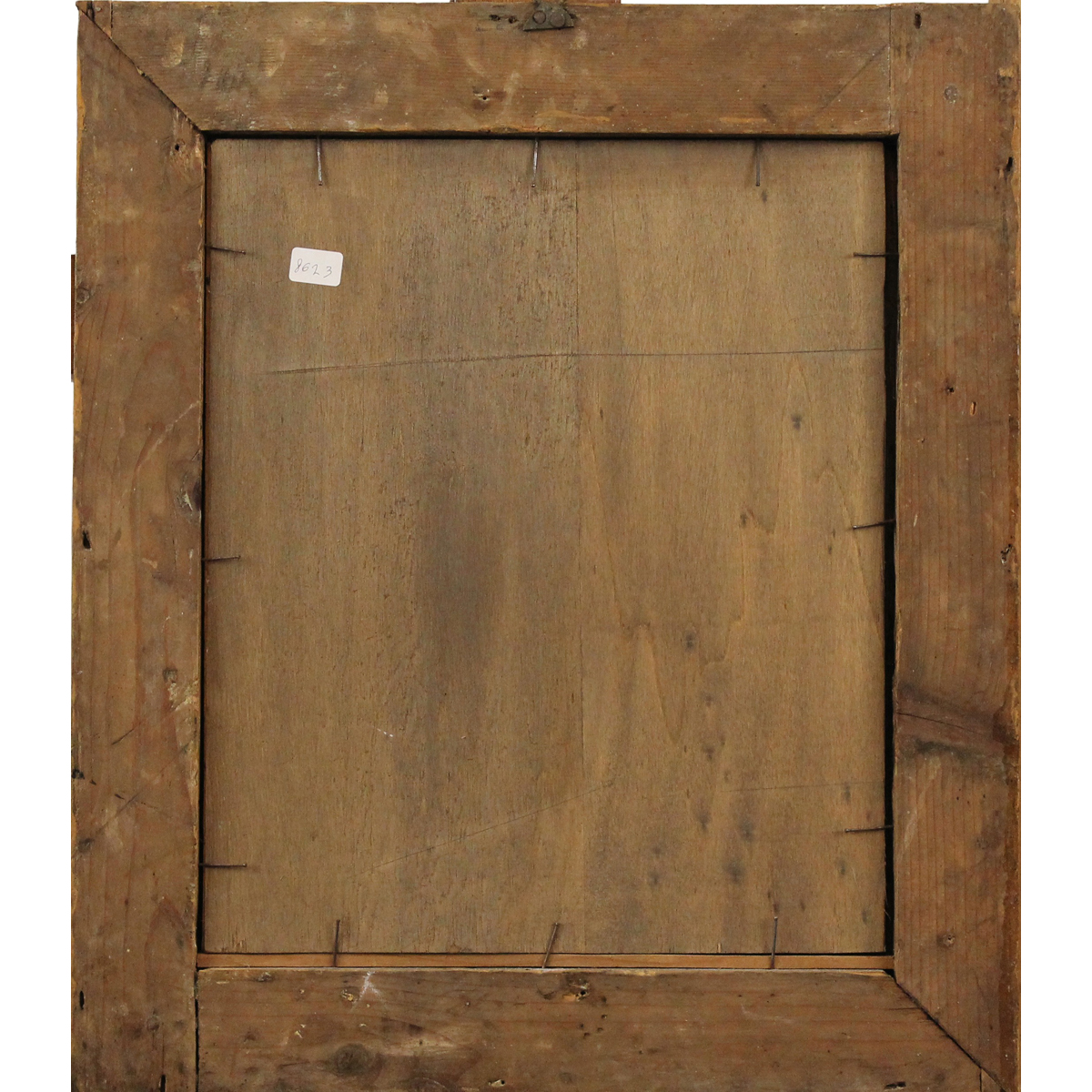€ 400Dipinto ad olio su vetro in cornice in legno dorato a canna spaccata. Cm 32x25