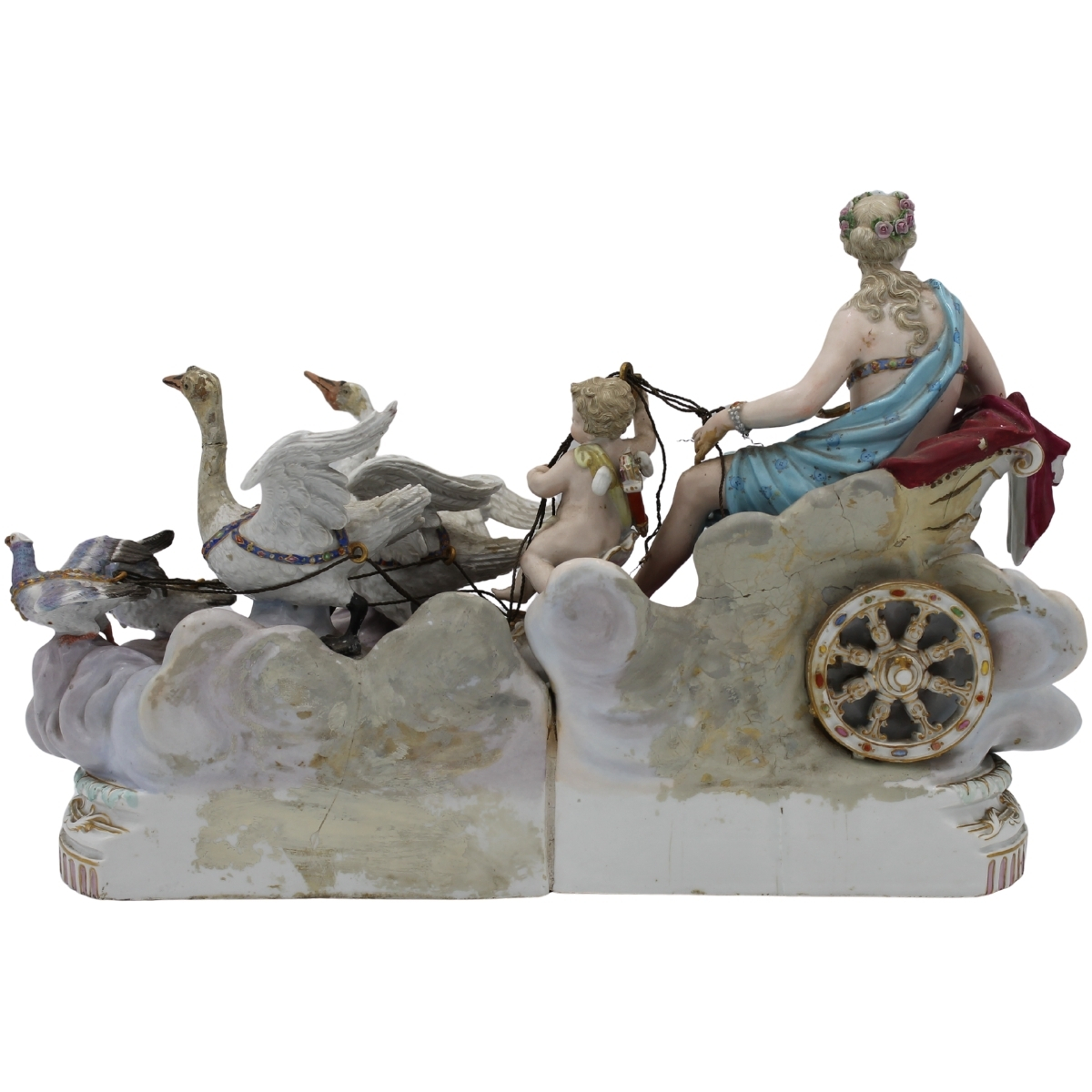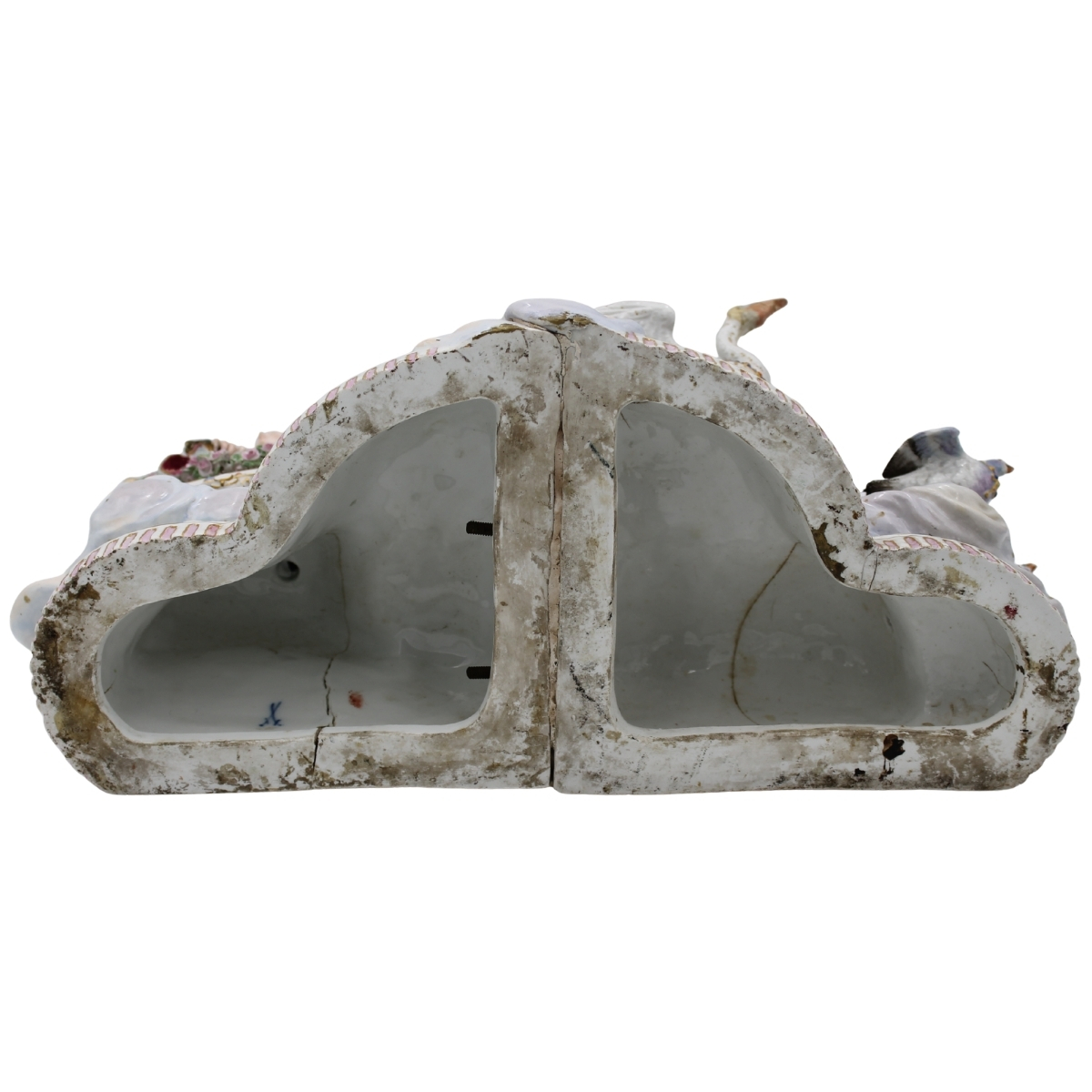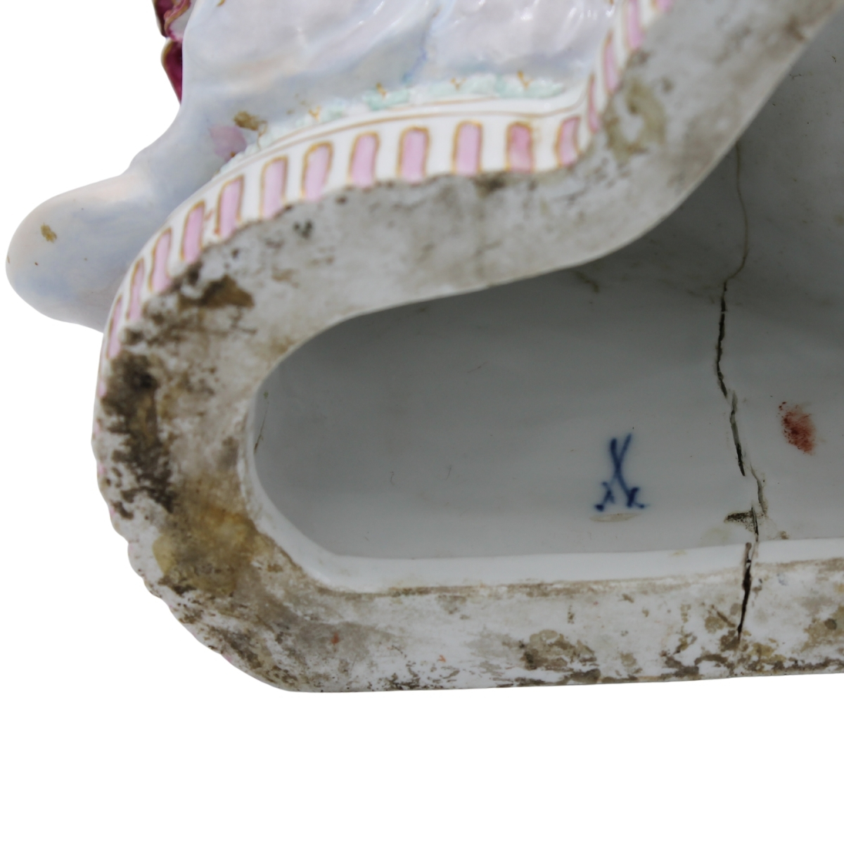€ 500Grande gruppo in porcellana policroma Meissen (restauri e mancanze). Fine secolo XIX. Cm 45x20x29