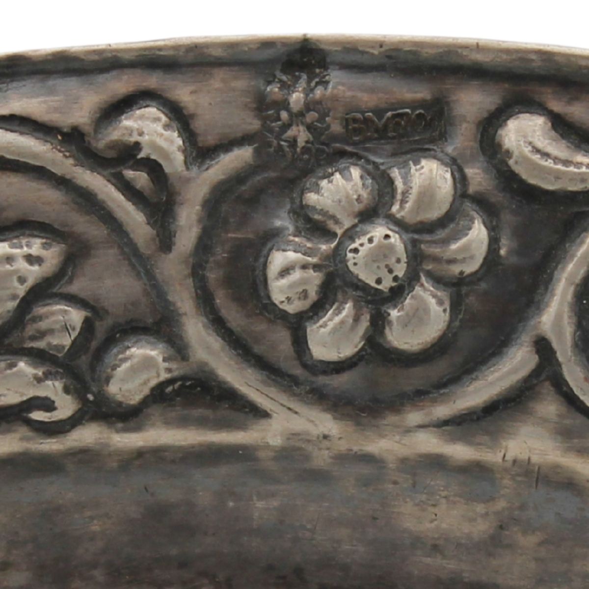 € 150Antico argento inciso e sbalzato a motivi floreali e vegetali. Marcato Palermo. Fine secolo XVIII. Gr. 234. Cm 24x18