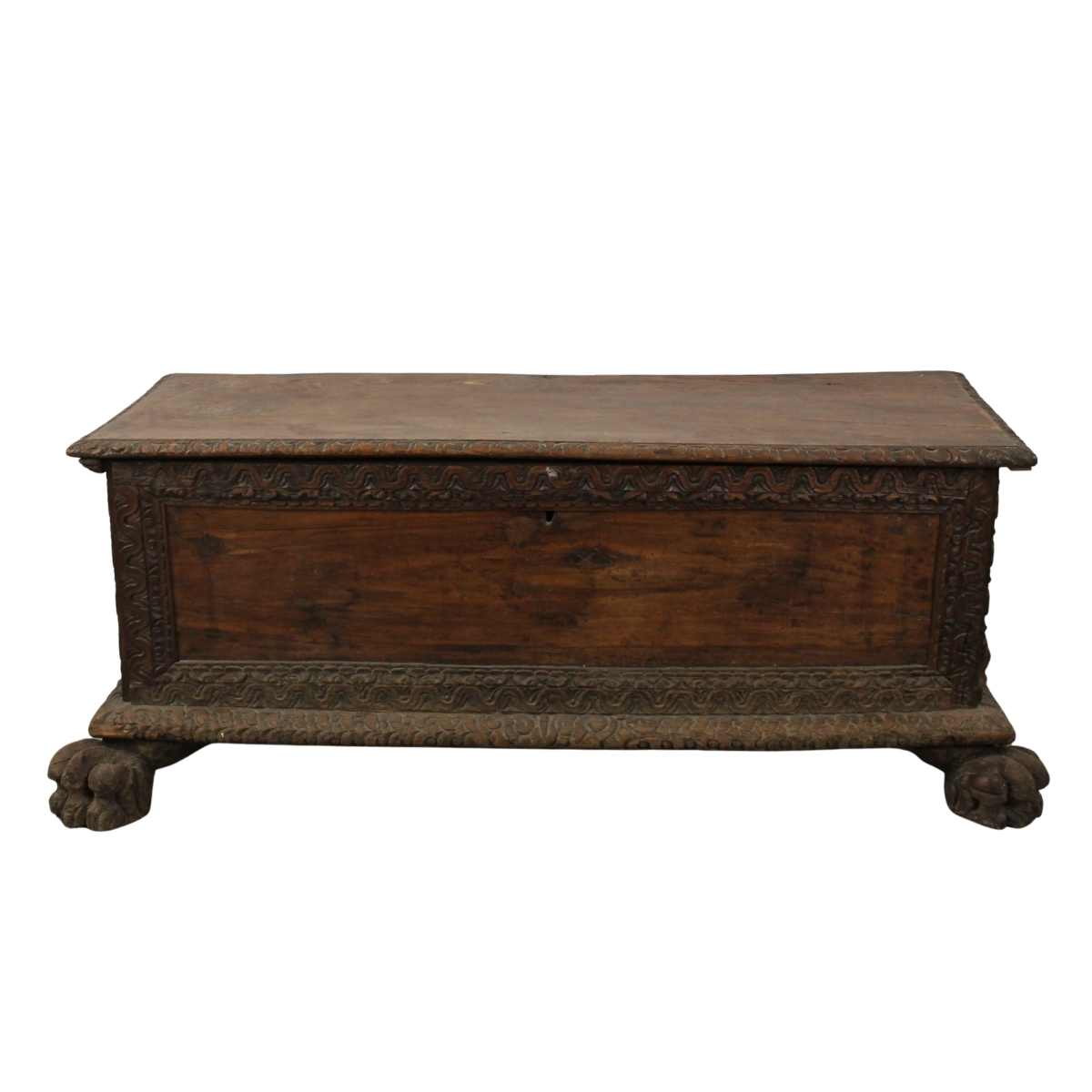 € 1.200Palissandro con intarsi a motivi geometrici, maniglie e borchie in bronzo dorato e piano inmarmo incassato di epoca posteriore. Sicilia. Cm 126x56x99