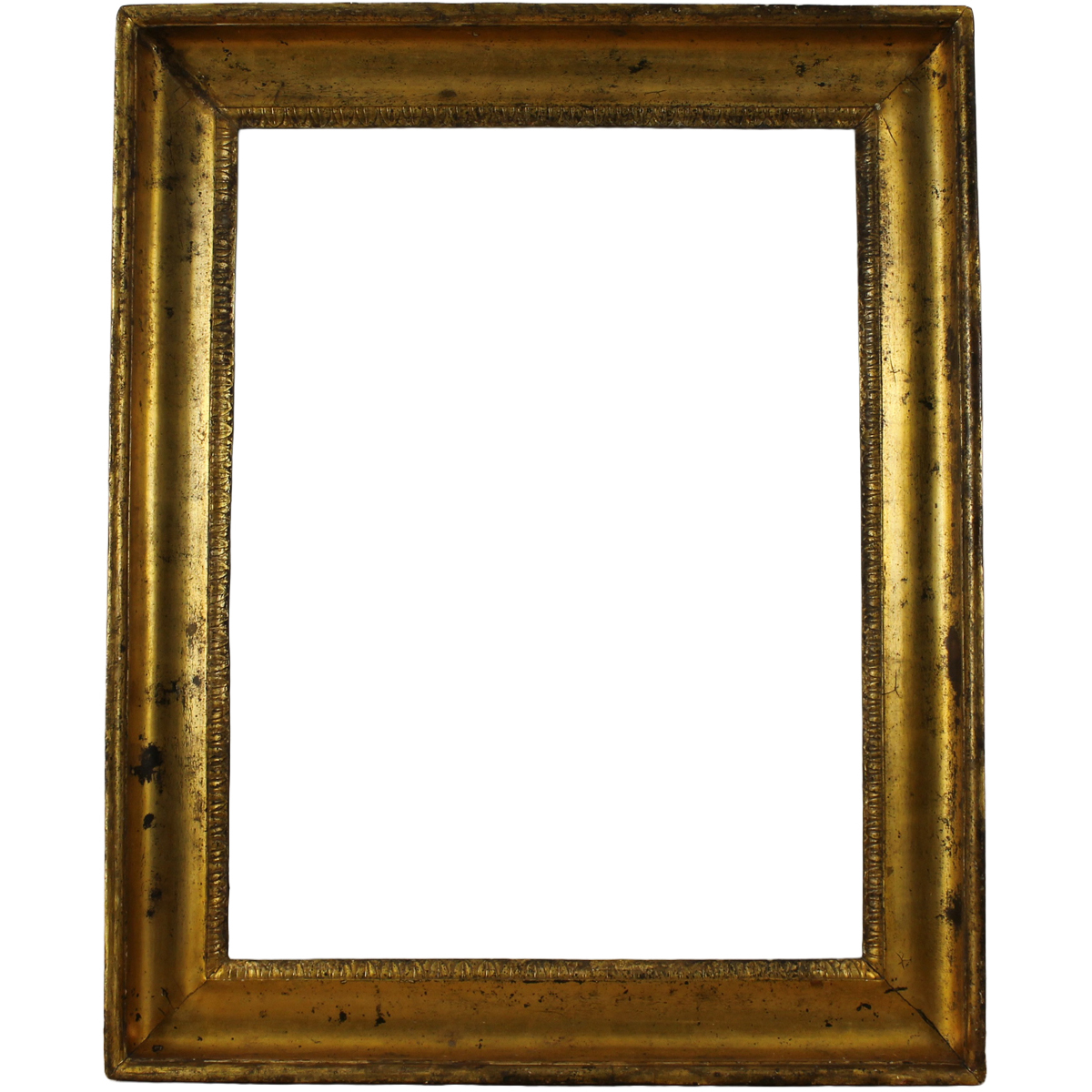 € 200Legno dorato con decoro a rilievo in gesso a motivi floreali. Sicilia. Secolo XIX. Cm 54x48,5 (misure esterne); cm 33x28x5 (misure interne)