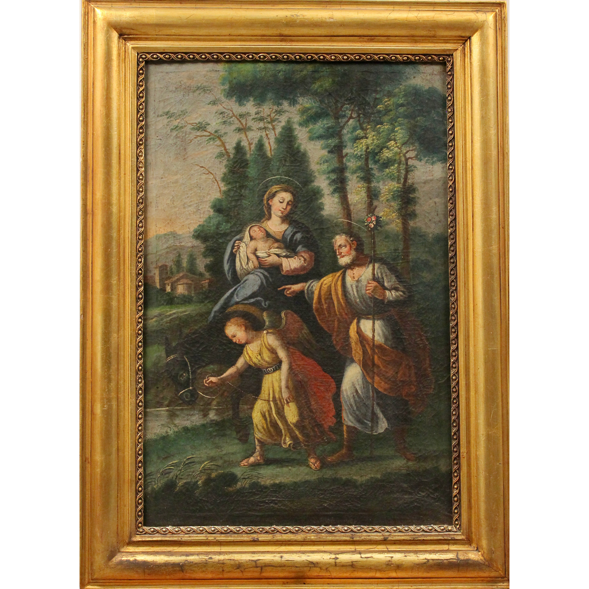Lotto di tre dipinti ad olio su tela in cornice in legno dorato. Cm 74x50